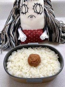Hinomaru means circle of the sun, and bento is lunch box. We just put white rice and a single umeboshi (pickled plum) in the middle. This style lunch box may look simple and cheap, but actually it’s very healthy and tasty. Most people don’t know just how good it is.
