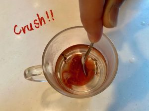 Pour hot water or green tea over your umeboshi, and then crush it with a spoon. Then drink it. It’s delicious! I usually drink this when I feel cold, hungover, or if I’m worried about heatstroke.