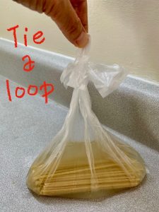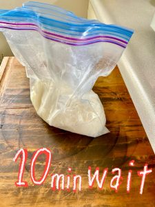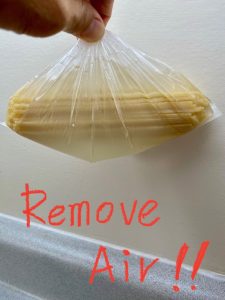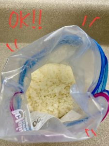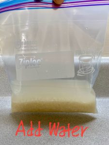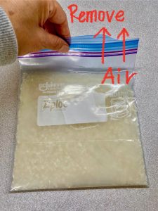 Today, I’m using a Ziploc bag, but even if you use a different type of plastic bag, the measuring technique is the same. When you check the water level, make sure the bottom of the bag is flat and level.