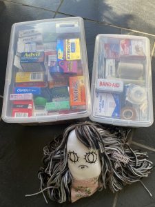 These are my emergency medication boxes. They are portable, water resistant, and easy to carry. I keep them in a place where they are unlikely to be crushed in an earthquake.